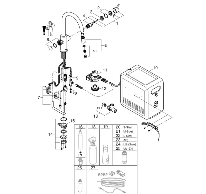 - max. Zapfkapazität (bei 300 kPa): 7 l/min